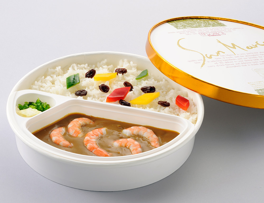 プリプリの海老をボイルし、ピリッと辛いアメリケーヌソースで濃厚な味わいに仕上がったシーフードカレーです。